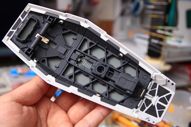 シールドのアーム類。本体にくらべて簡易なディテールでしたので、面を整理してメタルパーツを追加。