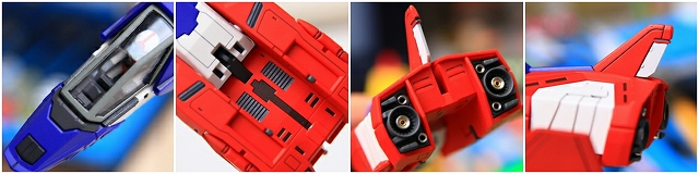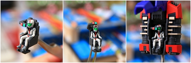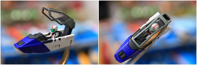 フィギュアとコクピット周辺。コアファイター変形やシートの90度回転などで非常に限られたスペースのため、付属フィギュアは他の3体と比べて少し小さめで簡易ディテールになっています。目立つ部分は彫りを入れるなどして、少々改善しています。