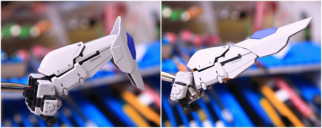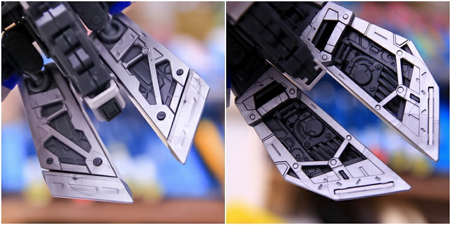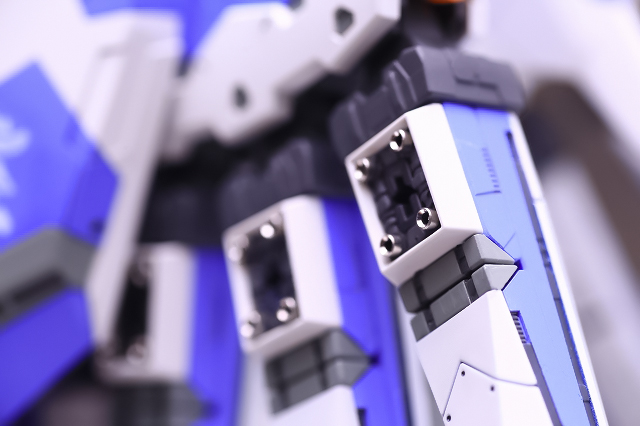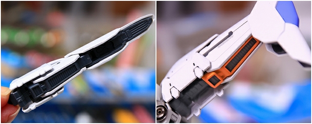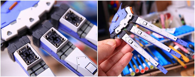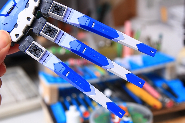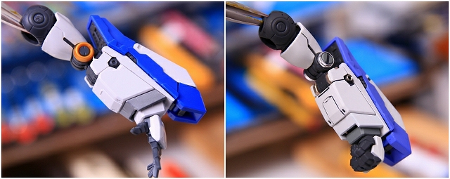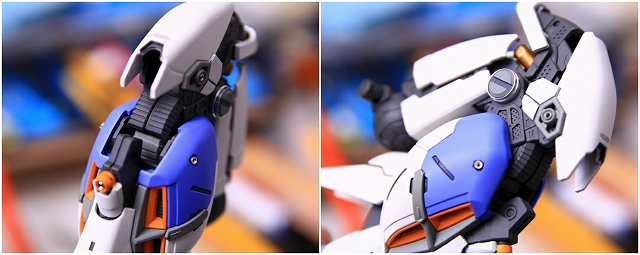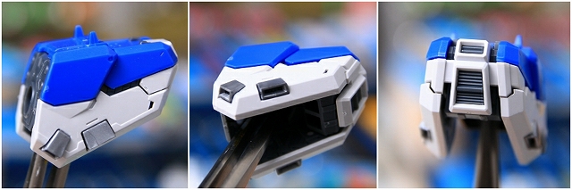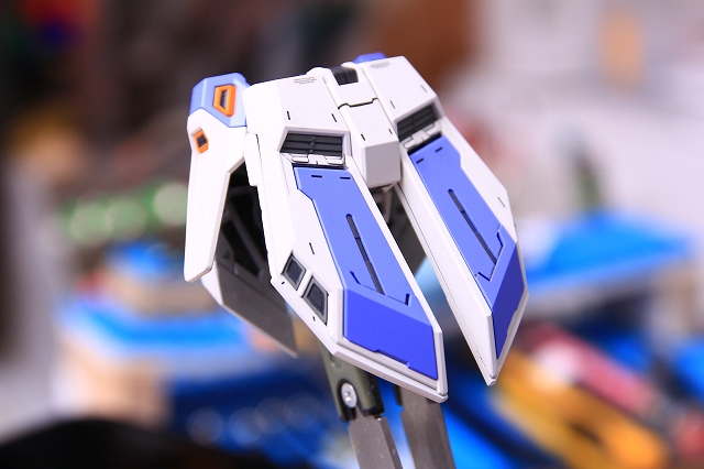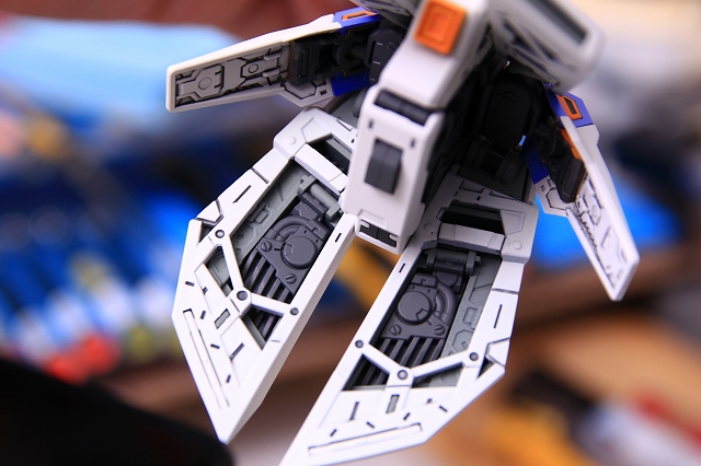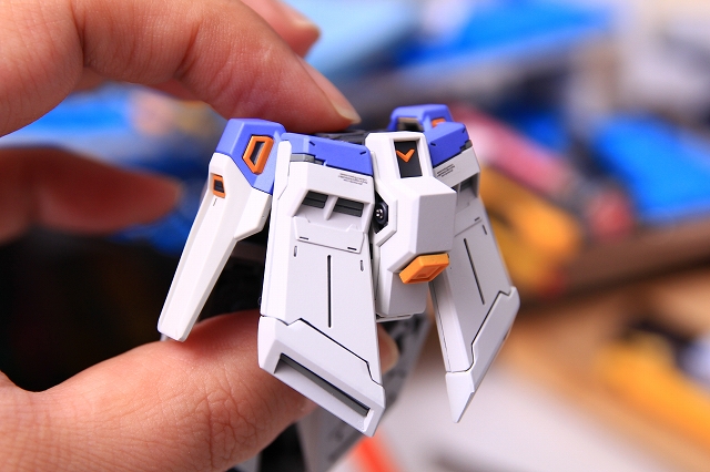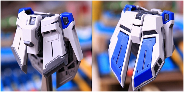リアアーマーも同様に、シルバー色分けがアウトラインをボヤッとさせているので、白に統一しました。青パーツは開閉ギミックがあるためパーツがグラグラしていたで、しっかり固定。
