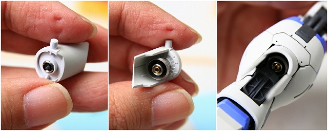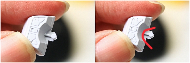 従来のキットだとファンネルがポロポロ外れるのが当たり前(?)という流れでした。が、今回はマウントを巨大化し保持力アップ!ポロポロしないシッカリした構造になりました。見た目はちょっと野暮ったくはなりましたが、ポロリするより断然良いと思います。素晴らしい決断です。