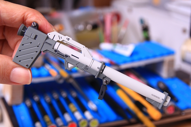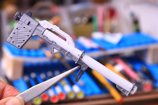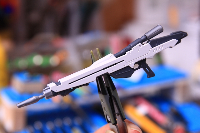 ライフル、ノーマルで仮組み。全体的なアレンジを行ったのか、知ってるデザインと知らないデザインが混ざってます。今回はキットのイメージを優先して制作しました。
