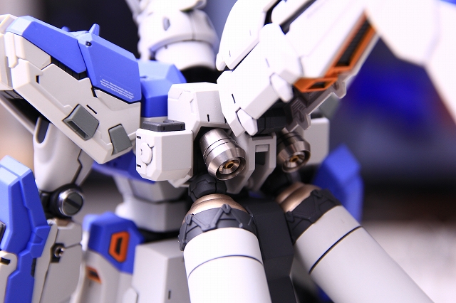 ディテールの面では、ヒジ関節の黄色丸モールドは切り落とし、アルミの丸皿とステンレスのマイナスリベットに変更。前腕側面にPPアポジ1.5mm。などなど。