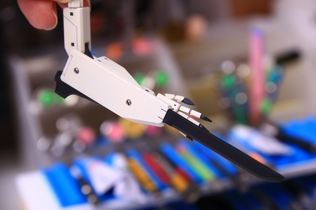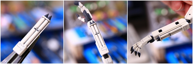 前腕には2タイプのアタッチメントがあり、武器等を装備する使用になっています。
