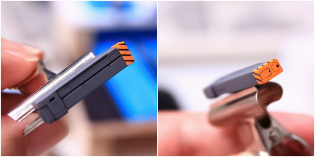 ケース&グリップは別パーツで表現されています。ホルダーに取り付ける場合はケース&グリップを外し、ホルダーを差し込んで、ケース&グリップを再度差し込んでください。