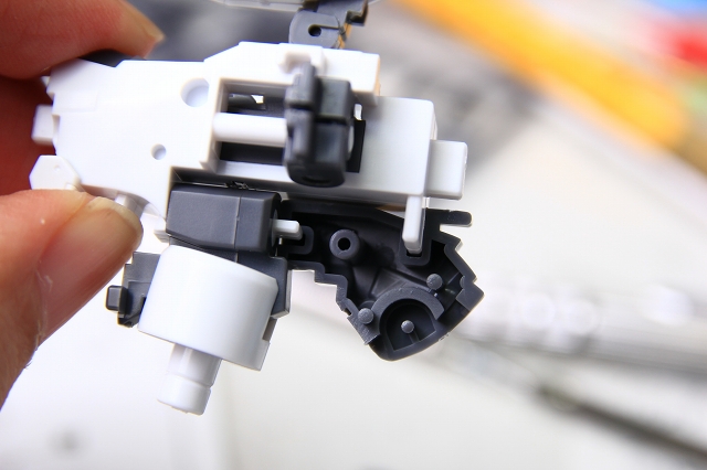 ただし(あくまで僕の想像ですが)金型か素材の誤差なのか、設計思想よりもちょっと硬くなってしまっていると思います。はめ込みがきつい場合、そういう設計なのか、嵌合の複合的な誤差蓄積なのか、素材の問題なのか、わからない場合が多かったです。何度も何度も仮組みバラシを繰り返して、構造や調整のコツを掴んていきました。そのため当初の予定よりも少し時間がかかってしまいました。