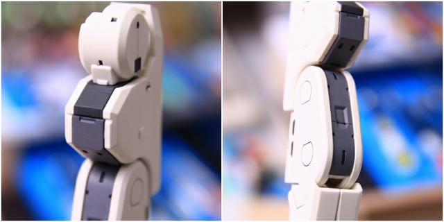仮組み。バンダイガンプラとコトブキヤのキットを比べると、一長一短といった感じです。組み立てやすさと関節構造はバンダイですが、ディテールのシャープさはコトブキヤのほうが精密です。それぞれの特徴は背反ではないので、理想を言えば両方のメリットを持ったキットも可能かと思います。ただ、シャープさと年齢制限は背反なので、そこはどっちをとるかですね。あ、いきなり脱線しました。