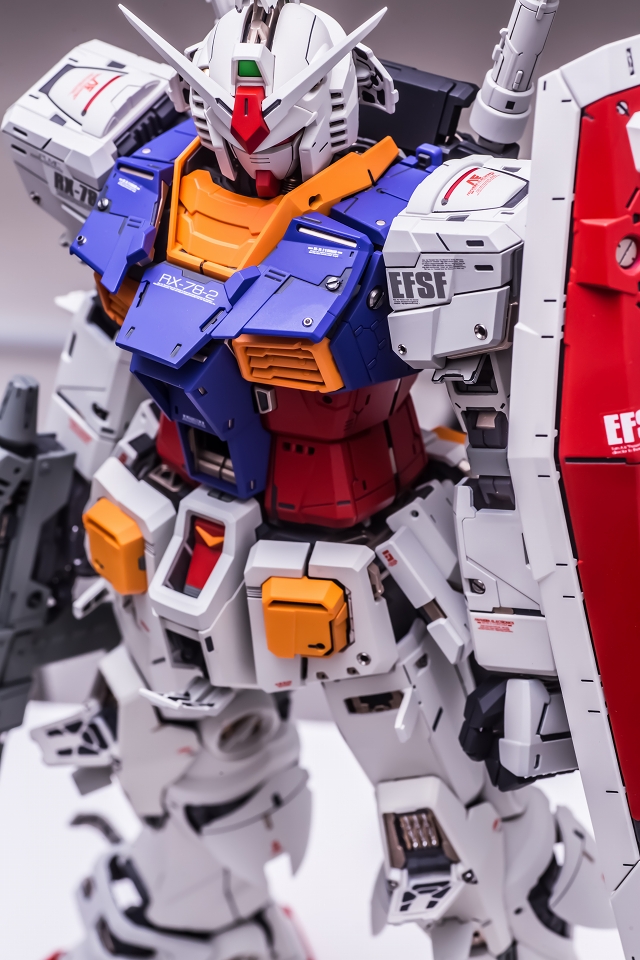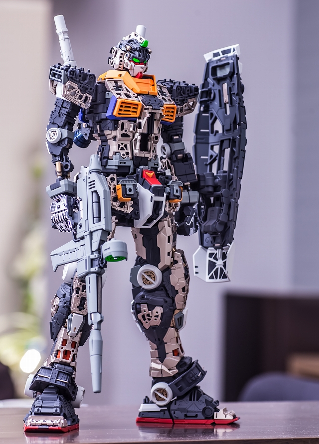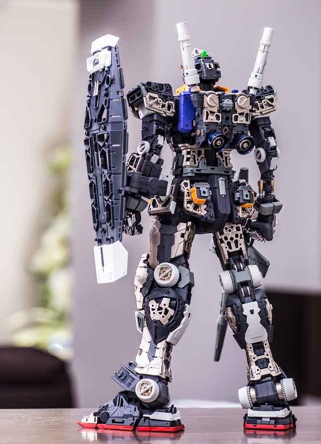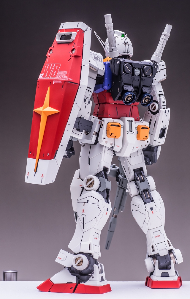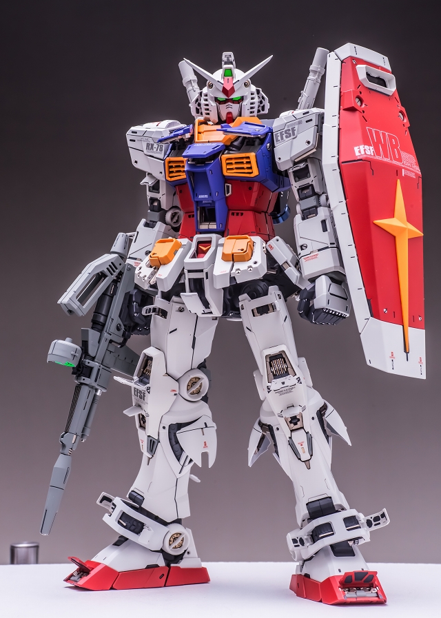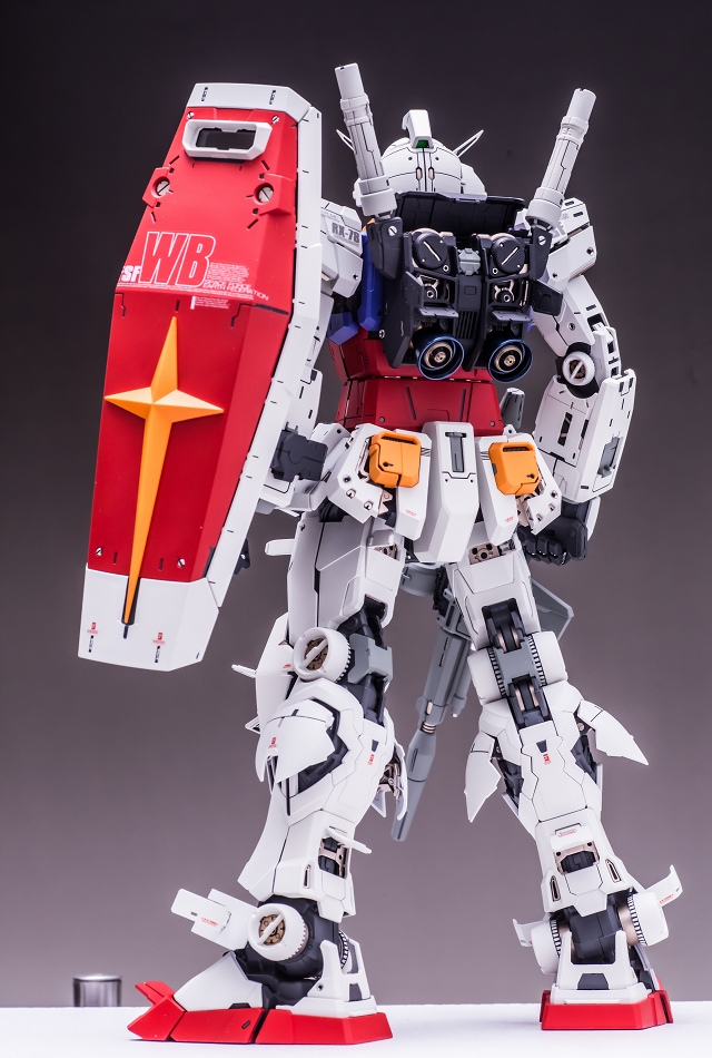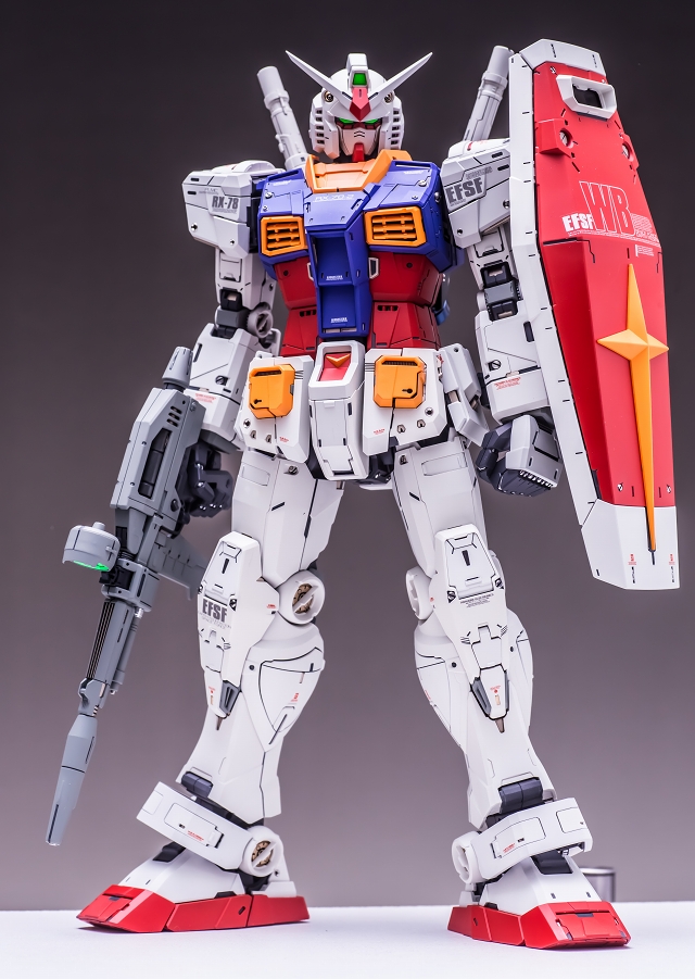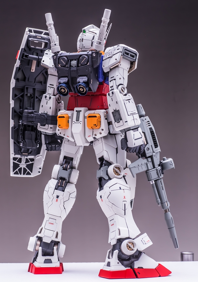 出来上がった完成品を眺めていると、大きいスケールならではの迫力と間延させない適度なディテールがあり、バランスが非常に充実している。また一時的な流行に流されずファーストガンダムの原点を尊重した心意気、なおかつ技術面では最新を取り入れていて、とても良いキットだと実感しました。