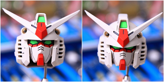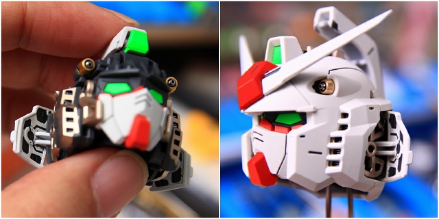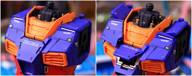 ノーマルは大河原的アニメ的表情です。首周りを改造し可動範囲拡大することで、アゴが引けるようになり、カトキハジメ版のような表情もできるようにしました。