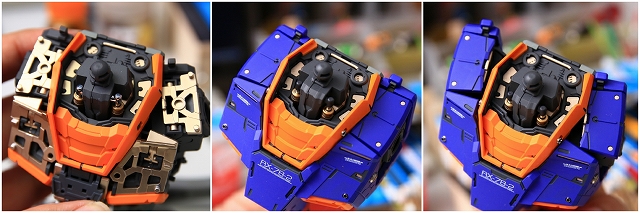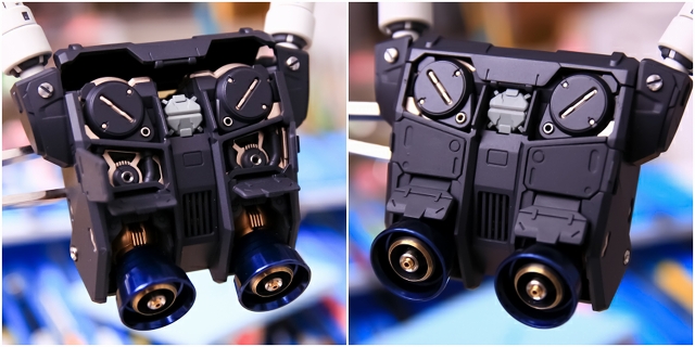 基本的な変形構造は近年のコアファイターと同様です。しかし機種のスライド可動が独特で、内部構造を知らないと変形が難しい(知っていても難しい)。簡単スムーズに変形でるように、可動部分の加工とグリスアップを行いました。