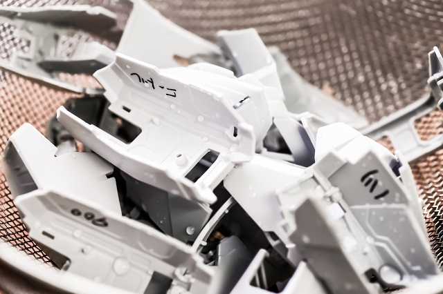 ヤスリがけなどの工程が一区切りするごとに、アルコールや中性洗剤や超音波洗浄機で汚れを落とします。