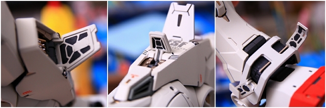 コクピットハッチの可動です。まず上に3mmくらい持ち上げて、それから前方に5mmくらいずらします。そこからはある程度自由に動きます。ただ、ここは可動させずハッチを開閉するだけのほうがバランスが良いと思います。