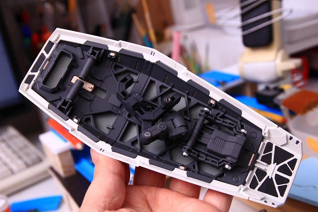 内部フレームも凝った構造になっています。ここではグレー1色だったフレームを、メタリックやグレー数色で塗り分け、メタルパーツ埋め込みなどを行いました。