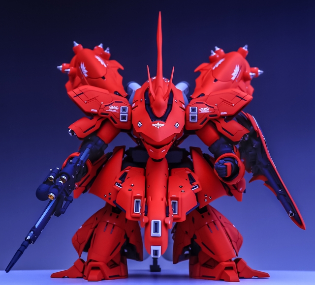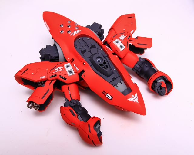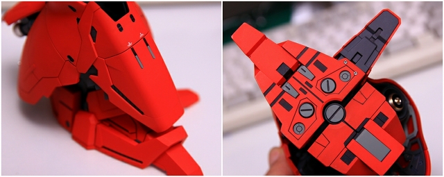 というわけで流用パーツで作りかえました。サザビー・アルファアジール・ノイエジールなどとの共通性を意識しました。