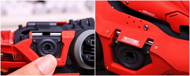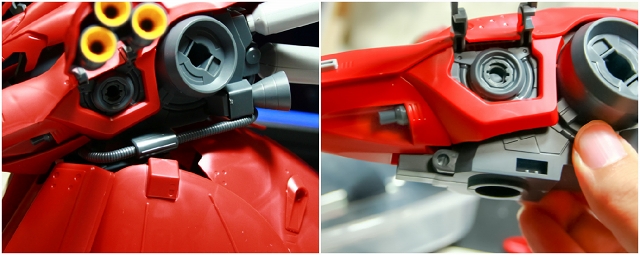 ここは肩アーマーが取り付く部分ですが、今回は肩アーマーの位置を変更したので、余分なスペースができます。そこにメタルシャフトを埋め込んでチラ見えするようにしました。