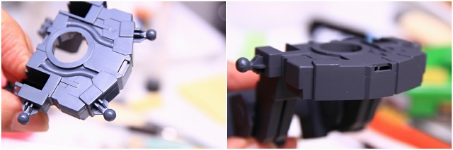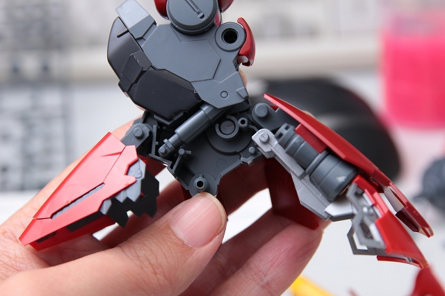 肩と上腕の間にはいるフェアリングです。形状は悪くないのですが、まったく可動しないので周辺とのバランスが取れません。なのでここも交換します。