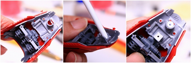 しかしREらしい弱点もあって、パーツの合いが悪い部分もあるので、何十回と仮組み分解を繰り返して調整していきます。