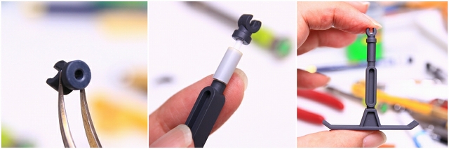 首はボールジョイントに変更し可動範囲拡大。プラ棒で抜き差し可能にしたので、高さも調整できます。