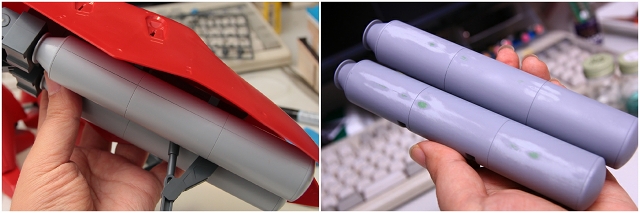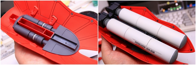 リアスカート裏面のプロペラントタンク。こちらは長さ太さともにバランスが良いので、そのまま使います。