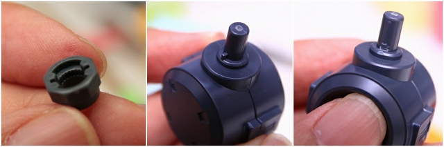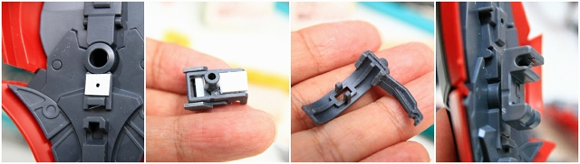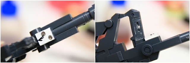 このキットの可動部にはラチェットやストッパーがついてますが、設計的に間違っているので機能していません。ストッパーは解除して可動を広げます。