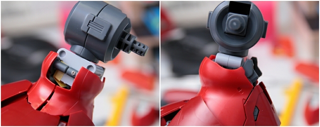 つぎに頭部の位置の改造です。ノーマルだと首がほとんど可動しない。位置が高すぎるし、アゴが上がっている。これを改善します。