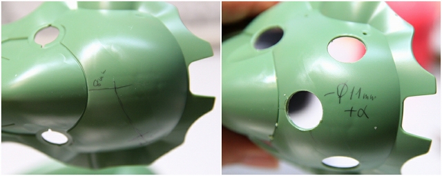 この周辺もプラ版でブラケット作成、ネジ用プラナット埋め込みなどで強化しています。(詳細は省略します)