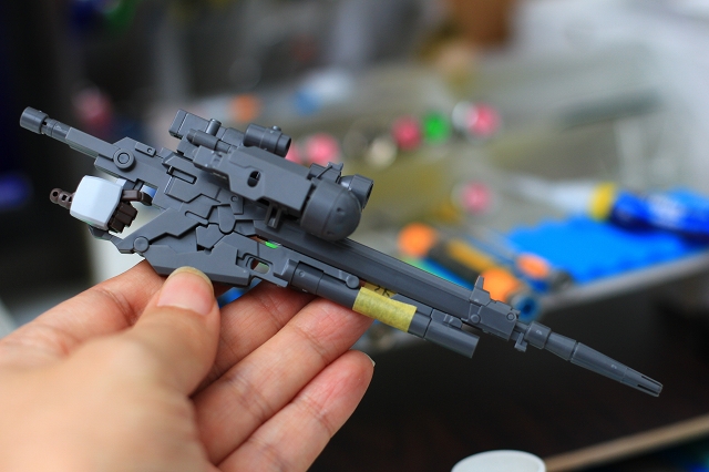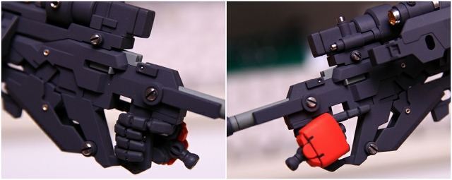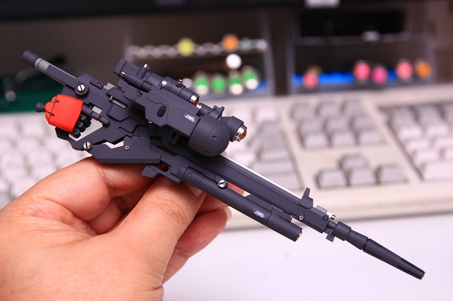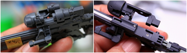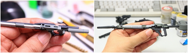 こちらはノーマルのライフル。元デザインとはぜんぜん違うアレンジだったり、モナカ割りなのは仕方がないと思います。でも「重底が干渉して構えることもできない」は、ちょっと困ります。