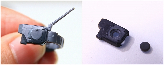 バルカンポッドは少々簡略化されています。ディテールは悪くないのですが、丸の部分は赤での塗り分けをキレイにしたいので、別パーツ化しました。