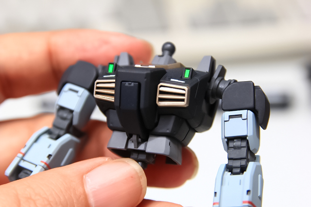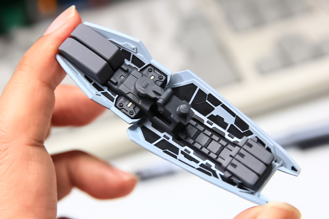 胸のグレーはほぼニュートラルでわずかにウォーム系。コクピットハッチはほぼグレーに近いブルーです。写真だと色味の判別が難しいですが、実物はしっかり色分けされています。