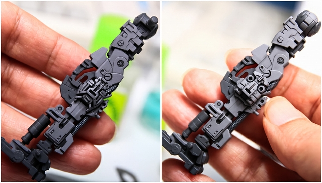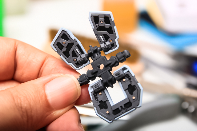 フレームはアドバンスドMSジョイント。分解ができないので加工の制限があり、軟質樹脂なのでヤスリも塗装もできない。モデラーには苦労の多い素材ですが、できる範囲で最善に仕上げていきます。