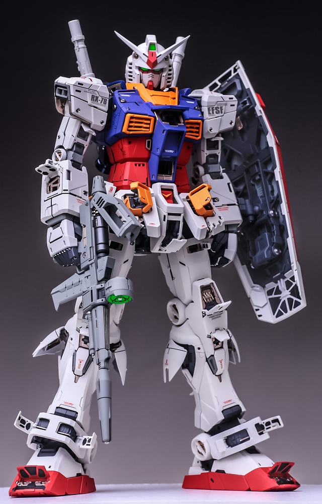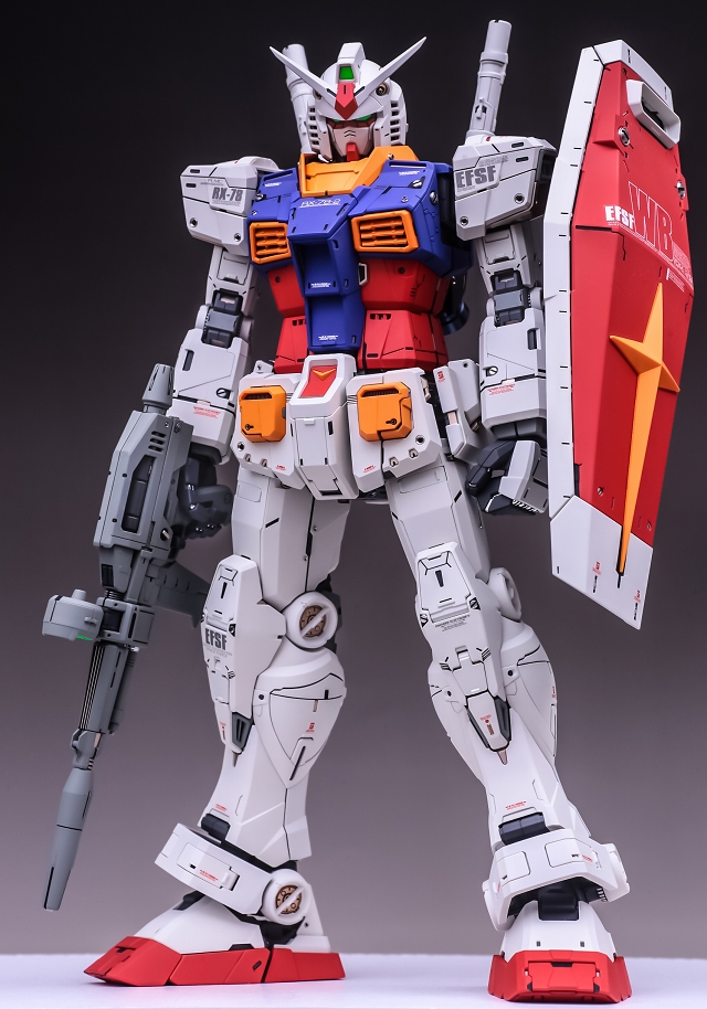 出来上がった完成品を眺めていると、大きいスケールならではの迫力と間延びさせない適度なディテールがあり、バランスが非常に充実しています。また「一時的な流行」に流されず、ファーストガンダムの原点を尊重した心意気を感じて、とても良いキットだと実感しました。