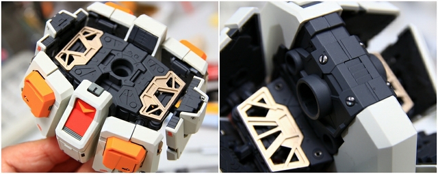 胸の左右のハッチですが、可動のためのジョイントが致命的に弱くて、簡単に破損してしまいます。組み立てるときも、可動させるときも破損します。十分注意が必要です。