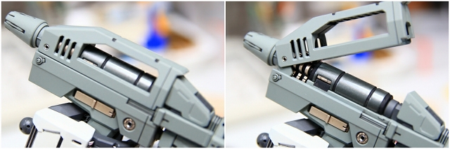 ミサイルランチャーの展開。ミサイルランチャーは組み立ても可動もキツキツなので、調整してあります。