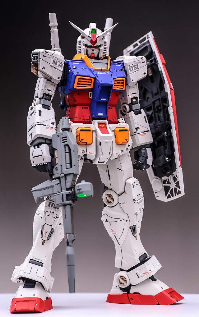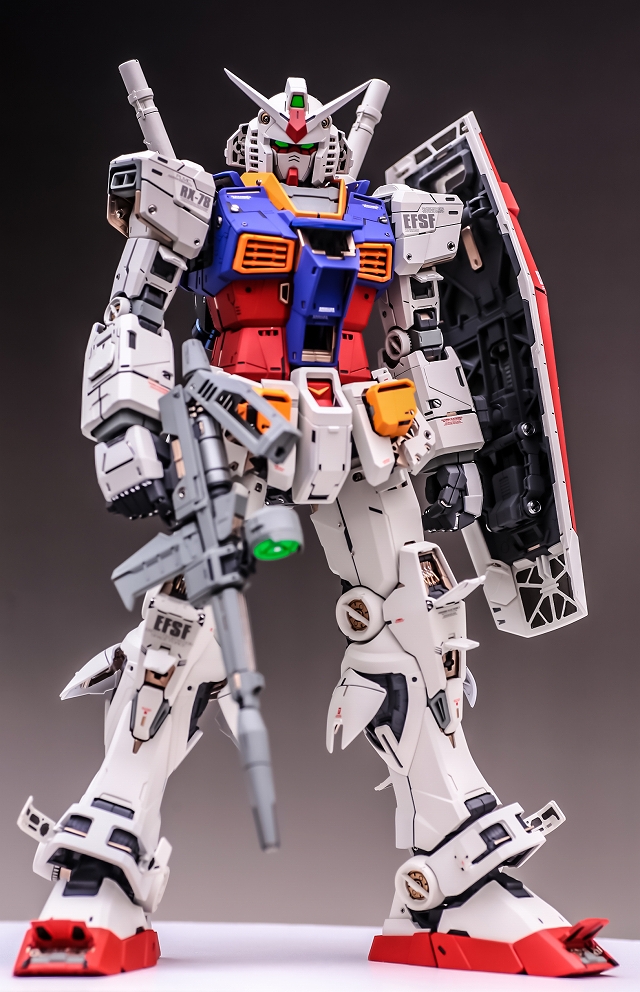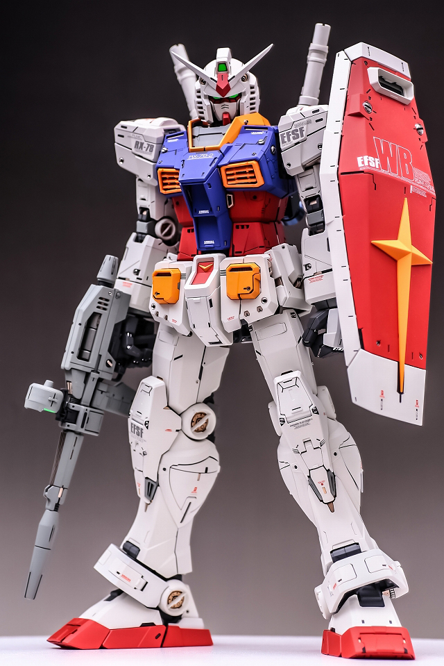 出来上がった完成品を眺めていると、大きいスケールならではの迫力と間延びさせない適度なディテールがあり、バランスが非常に充実しています。また「一時的な流行」に流されず、ファーストガンダムの原点を尊重した心意気を感じて、とても良いキットだと実感しました。