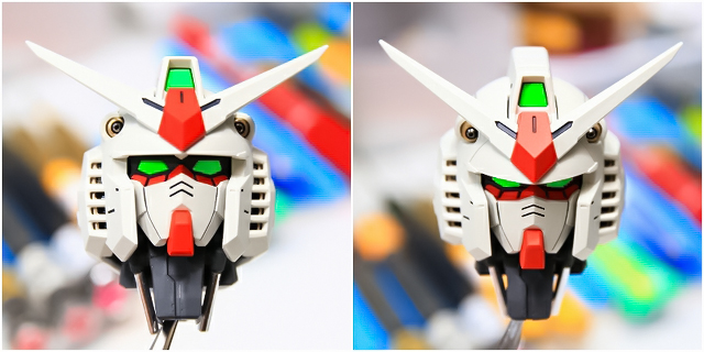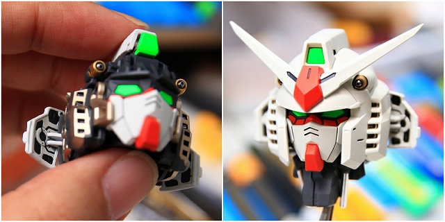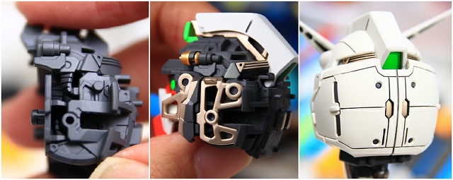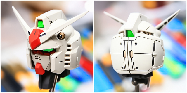 ノーマルは大河原的アニメ的表情です。首周りを改造し可動範囲拡大することで、アゴが引けるようになり、カトキハジメ版のような表情もできるようにしました。