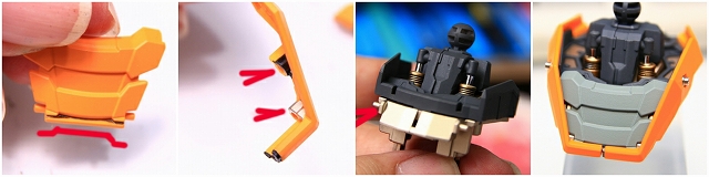 削ったほうが良い部分と、絶対に削ってはダメな部分があります。接着したほうが良い部分と絶対に接着しちゃダメな部分あります。難しい機構でしたが、ほぼ最適化できたと思います。(もし難しいと感じた場合は、削らず接着せず、キットノーマルのまま組み上げるだけでも十分大丈夫です。)