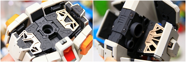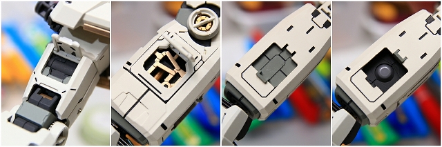 ハッチ開閉。中央の明るいグレー部分はシールドマウントです。回転可動は残してありますが構造上かなりキツめに設計してあるので、あまり動かさないほうが良いと思います。シールドを背中に背負わせたいときだけ慎重に動かしてください。