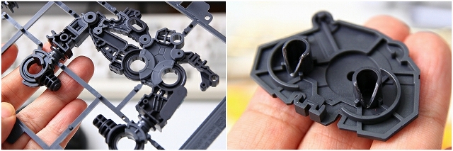 ここに外側フレームを組み付けると、可動が固定される仕組みになっています。というわけで普通に組み立てるなら気にしなくて大丈夫です。ただし僅かな強度ロスも発生するので、フレームをまっすぐに固定することでより安定した強度が得られます。