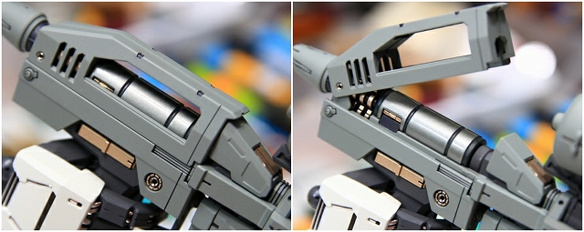 ミサイルランチャーの展開。ミサイルランチャーは組み立ても可動もキツキツなので、調整してあります。