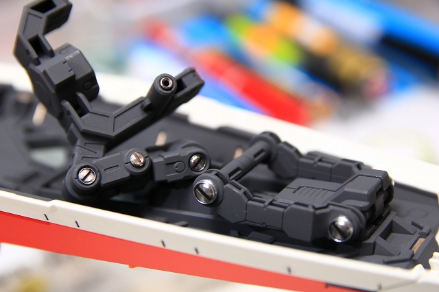 基本的な変形構造は近年のコアファイターと同様です。しかし機種のスライド可動が独特で、内部構造を知らないと変形が難しい(知っていても難しい)。簡単スムーズに変形でるように、可動部分の加工とグリスアップ。