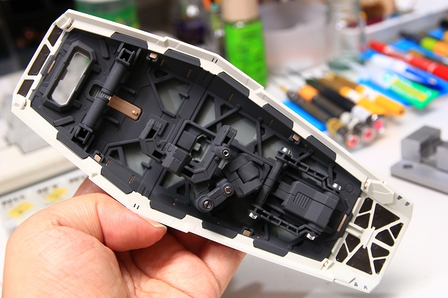 内部フレームも凝った構造になっています。ここではグレー1色だったフレームを、メタリックやグレー数色で塗り分け、メタルパーツ埋め込みなどを行いました。