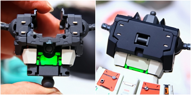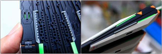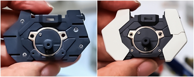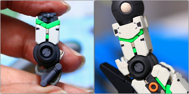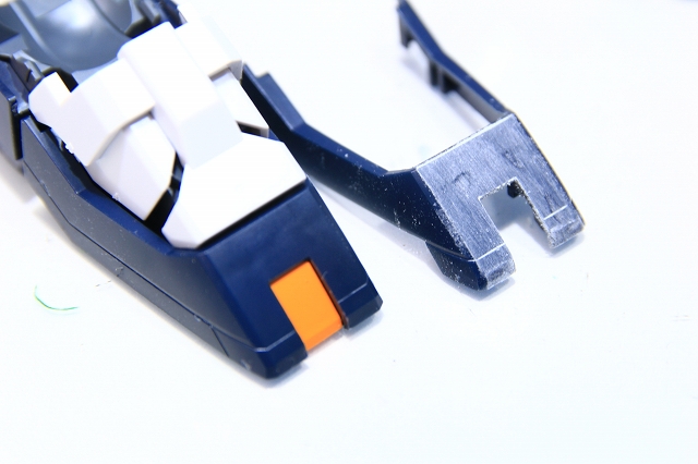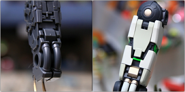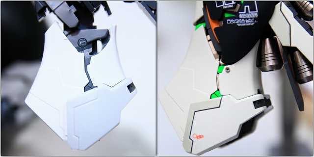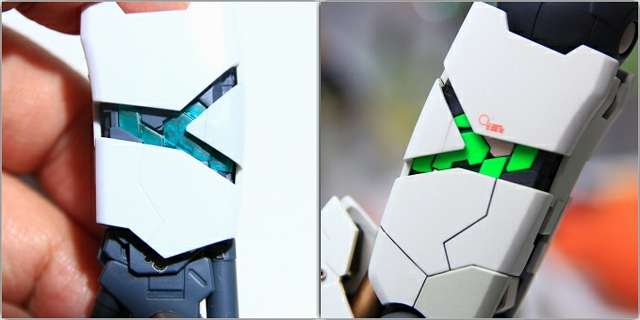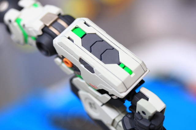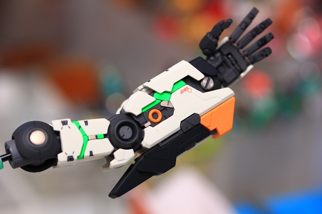 ちなみに前腕のフレームを切り欠き加工することで、フェアリング(白いパーツ)のスライド量を増やして、フレームの露出量を増やしてます。