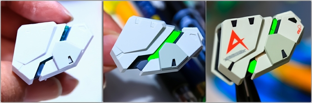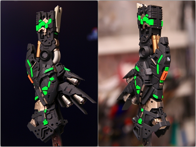 ※「ツインアイやセンサーグリーンを鮮やかに塗装するにはどうしたらいいんですか?」という質問を多くいただきましたので、ぷらもっちの【ぷらちく】のコーナーに「ツインアイ塗装方法」と「蛍光塗料と光源についての記事」をアップしました。蛍光塗装のウンチクなどが書いてありますので、ぜひ見てみてください。