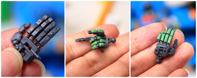 以前に完成品を納品した依頼者様から「指先が完成写真のようにできない」という問い合わせをいただきました。確かにこのマニピュレータは可動が多すぎるせいでポージングが非常に難しいです。また、何度か動かしているとポロッと取れてしまい、いちど取れると保持力がほぼゼロになってしまいます。たくさん試行錯誤してきましたが、固定で仕上げるのがベストと思います。