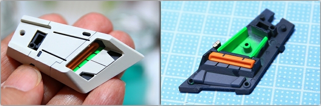 ファンネルはサイコミュシステムの最もメインな要素なので、サイコフレームを追加。ただしあまり派手にせず、奥まったところに少しだけ見えるようにしました。