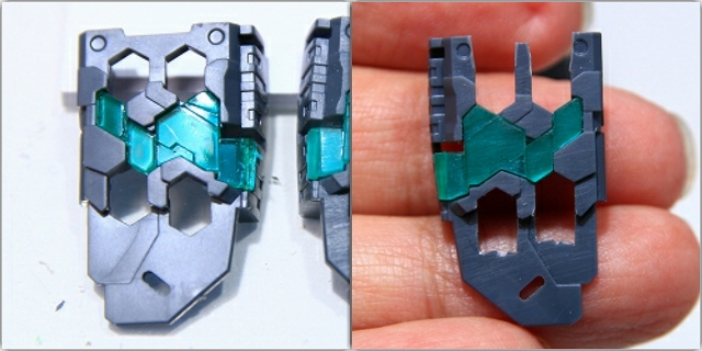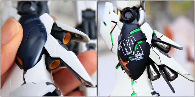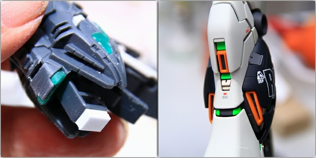 このキットは後ろから見たときにサイコフレーム露出量が非常に少ないので、背面側は多めに増量しました。