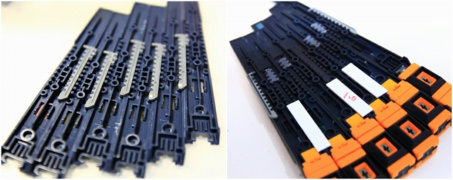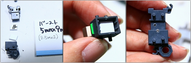 なかなか複雑なパーツ構成ですが、穴やピンなどひとつひとつすべての役割を理解して、調整していきます。キツめの方が良い、ユルユルが良い、絶対に削ってはダメ!などなど。