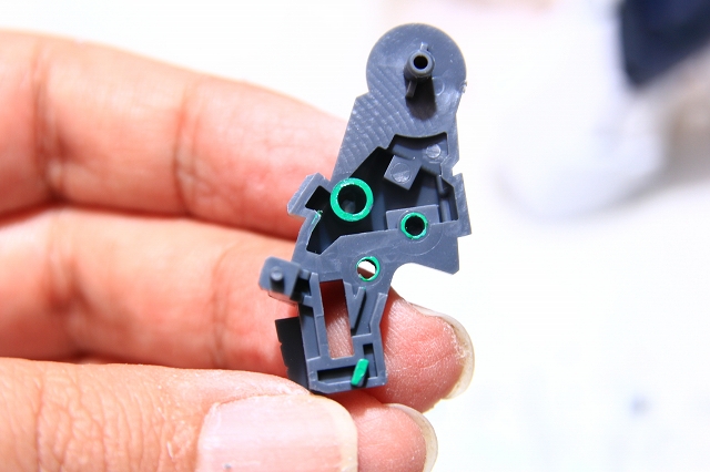スナップフィットの穴はほぼ全て加工調整しています。これは全身に行っています。