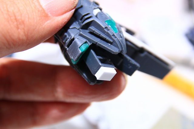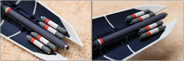 シールドのミサイルも設定画どおりの赤ですが、これもグレーに変更しメタルパーツなどでディテールアップ。