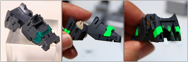 キットのサイコフレーム(蛍光グリーンの部分)は少々ボリューム不足なので増量します。