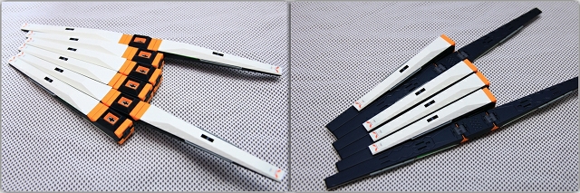 ヒンジの役割をするグレーのパーツは、折りたたみ方向によって説明書と逆の入れ方をしたほうがキレイに仕上がります。